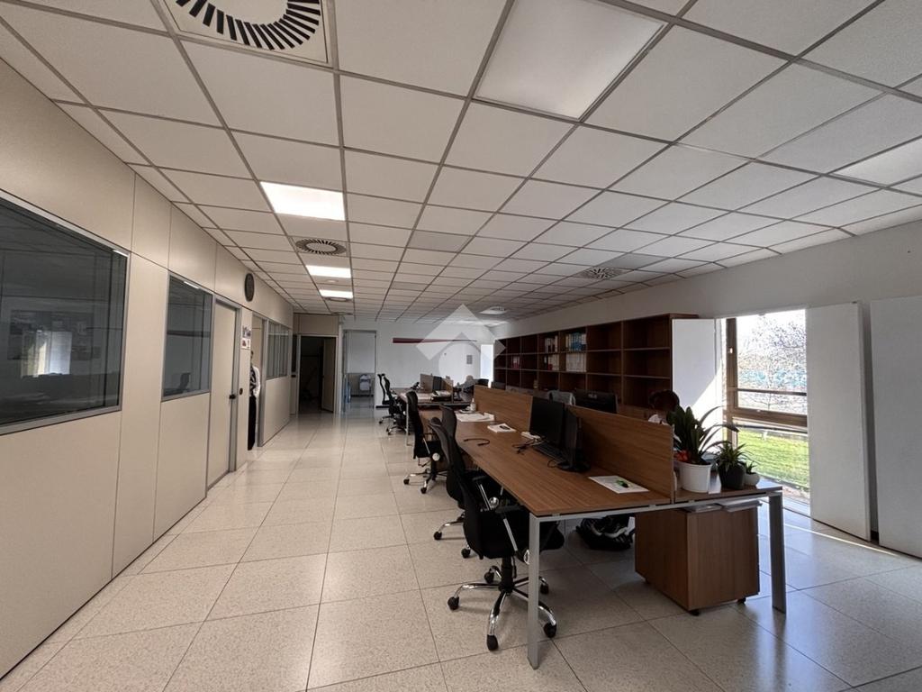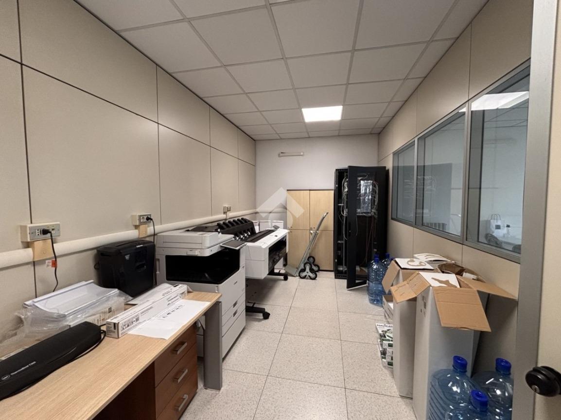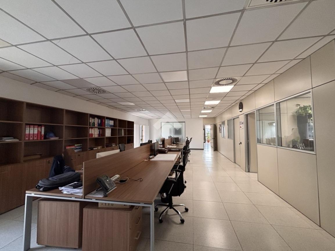 L'unità immobiliare dispone di reception, cinque ambienti separati con pareti mobili e uno spazio open-space. Doppi servizi igienici e ripostiglio. Pavimento galleggiante.